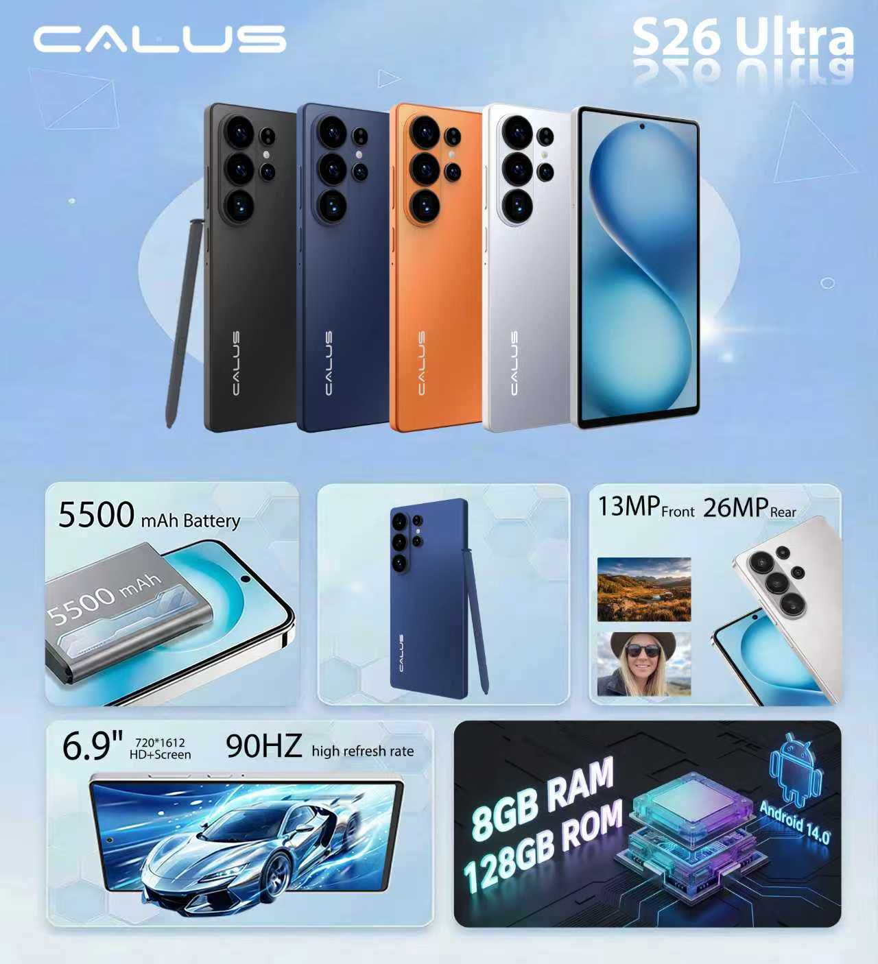 The Calus S26 Ultra is the flagship of the Calus series, designed for users who demand top-tier specs, expansive screen real estate, and professional-grade photography. With a massive 6.9-inch display and an advanced quad-camera system, it offers a true "Ultra" experience at an accessible price.